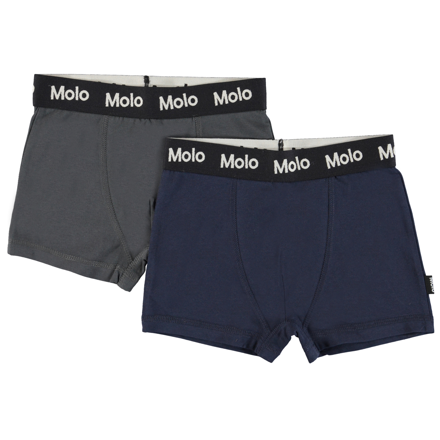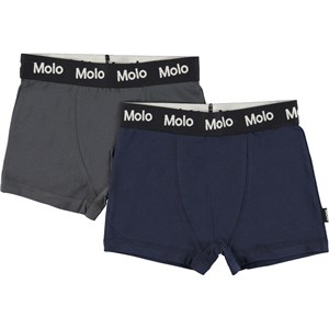 Pack with two pairs of boxershorts. One pair is in grey and the other is in blue. The boxer shorts have a wide elastic waist for a comfortable fit.