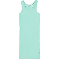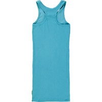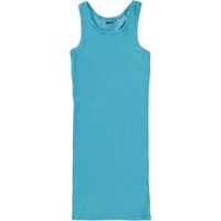 Turquoise tank top dress in a wavy texture that is made of nylon and elastane. The dress's stretchy design gives it an extra comfortable fit for optimal movement. It's easy to slip on after a trip to the beach or pool.