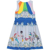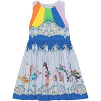 Sleevelss dress with a circular skirt in organic cotton. It has a round neck and a hidden zipper on the back. The dress is in a snug fit in rib jersey and has a skirt in cotton poplin that has a print of seal pups and clown fish in a fantastical coral reef.