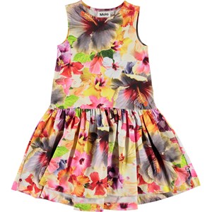 The blossoms are blooming in beautiful colours on the 'Pacific Floral' print on the Candece dress. It has a vest-inspired top and a full skirt that is longer in the back.