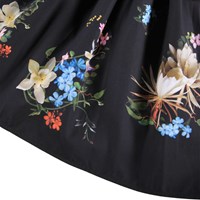 Long-sleeved black dress made of organic cotton with a fitted ribbed jersey top and poplin skirt. The dress has a regular fit with a floral print on the skirt.