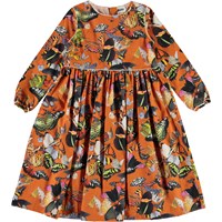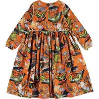 Become a part of the kaleidoscope of butterflies on the orange Cassiopeia dress. The dress has long sleeves and white piping as well as a zip closure at the neck.