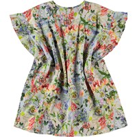 Beautiful tunic with ruffle sleeves and in beautiful floral print. The tunic is perfect over a bathing suit for a day at the beach.
