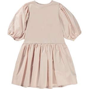 Cece is a delicate, light pink dress in organic cotton. The dress has a drop waist and puff sleeves with elastic at the edge. The sleeves and the skirt are constructed in cotton poplin, while the top is in organic cotton jersey.