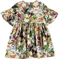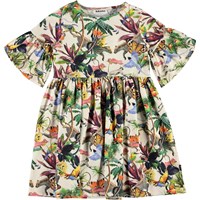 Chasity is a dress in the 'Imaginary Jungle' print, which has beautiful, colourful animals. The dress has full sleeves that give it a beautiful silhouette.