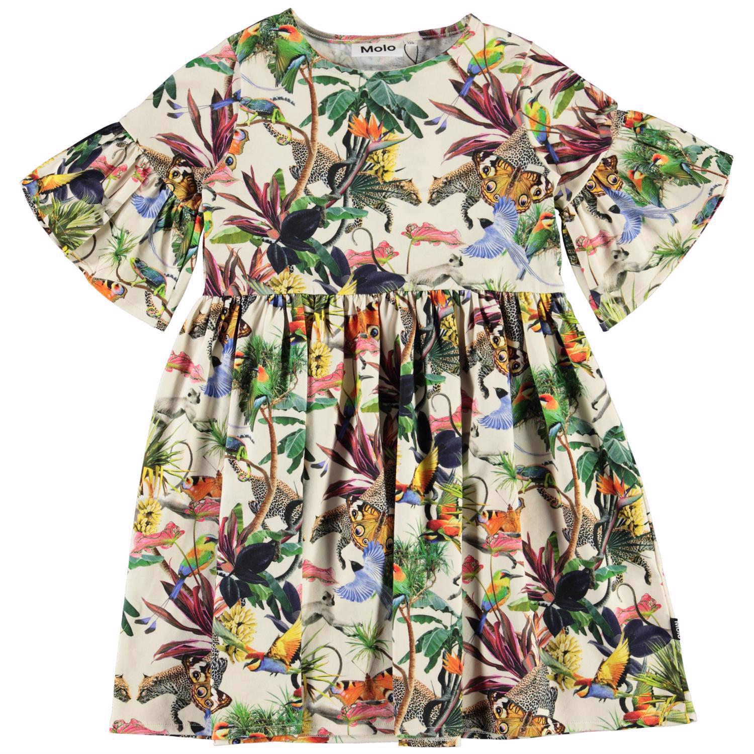 Chasity is a dress in the 'Imaginary Jungle' print, which has beautiful, colourful animals. The dress has full sleeves that give it a beautiful silhouette.