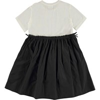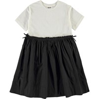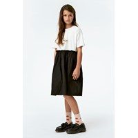 Chey is an oversized dress with a white t-shirt top and a black skirt with small bows at the sides.