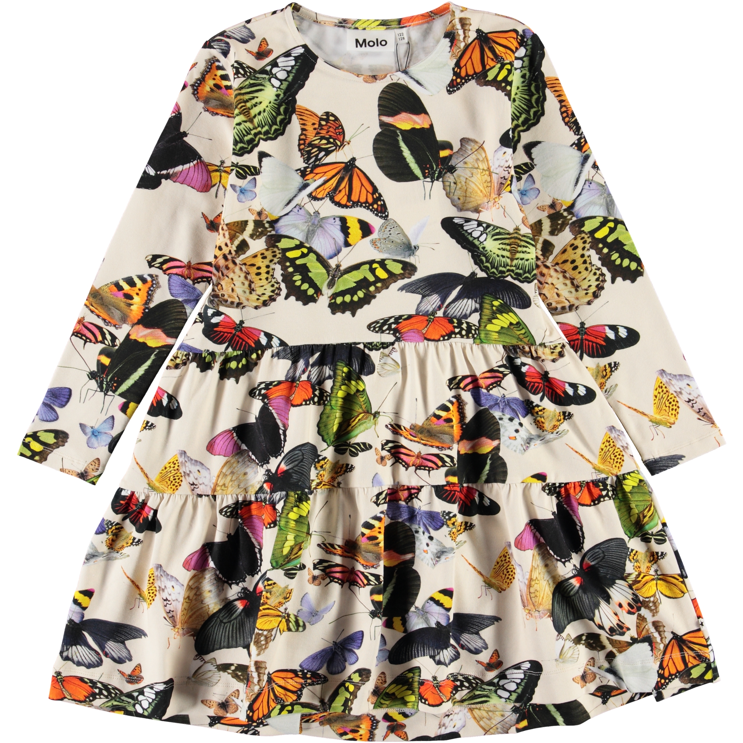 Become a part of the kaleidoscope of butterflies on the Chia dress. The dress has long sleeves and a comfortable, loose fit.