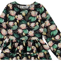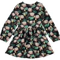 Christabelle is a long sleeve dress with pink water lilies. It has a peplum skirt and full sleeves.