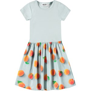 Light blue short-sleeved dress in organic cotton with a fitted ribbed jersey top and smooth jersey skirt. The dress has a regular fit with a print of ripe apricots.