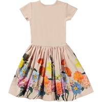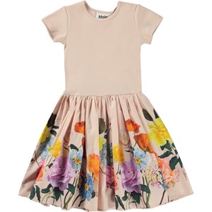 Cissa is a pale rose coloured, short sleeve dress with a circular skirt in organic cotton. The top of Cissa is rib jersey, while the bottom is in cotton poplin. The skirt is a print of roses, poppies and other beautiful wild flowers.