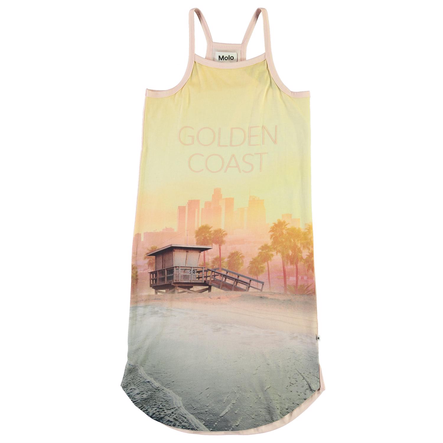 Cortney is a dress with straps that has a real surf vibe, with the shore and palm trees in the background. The dress is in 100% cotton and perfect for a trip to the beach. Certified by Ecocert Greenlife, certification no. 197496.