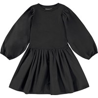 Green, knee length dress with poplin sleeves and skirt. This dress is in 100% cotton, has a round neck with a rib edge, long full sleeves with elastic and a gathered skirt with plenty of movement. It is in a regular fit.