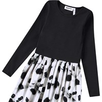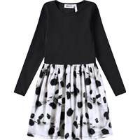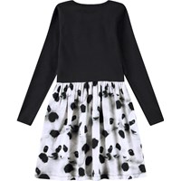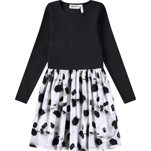 Long-sleeved dress in organic cotton, combining a fitted top in ribbed jersey with a smooth jersey skirt. The dress is easy to put on and has plenty of room for play and movement. The skirt of the dress features an all-over print of pandas.
