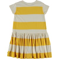 Cressida is a cotton dress in an oversized fit and short sleeves. Cressida has wide yellow stripes.