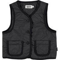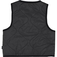 Black quilted waistcoat with edge tape. It is in 100% nylon, has a V-neck, a button front closure, black edge tape at the sides and on the patch pockets and is in a regular fit. Wear it with the matching Bette skirt in the same fabric and colour for a cool look.