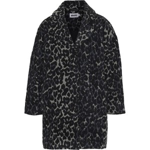 Holla is a coat with a leopard print in blue tones. The coat has lapels and a button closure.