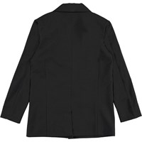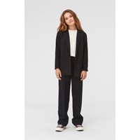 Hollie is a black blazer with lapel and a button on the front. It has two large pockets on the front.