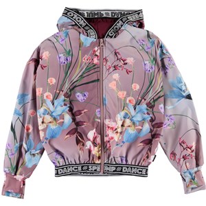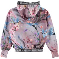Ophelia is a full sports jacket in rose with a floral print. The jacket has a zip closure, a hood and an edge tape with text. The sports jacket is a part of Molo's new sports collection, which seamlessly unites fashion and sports. Wear Ophelia with one of the matching styles from Molo's sports collection for complete and cool look. Molo’s sports collection is made with a unique, high-performance technology called HeiQ Smart Temp, which supports the body’s natural ability to cool itself down. The cooling function is activated when you are warm and sweating. The cooling function becomes deactivated when the body has cooled down. HeiQ Smart Temp ensures optimal performance and comfort. Independently tested for skin safety.