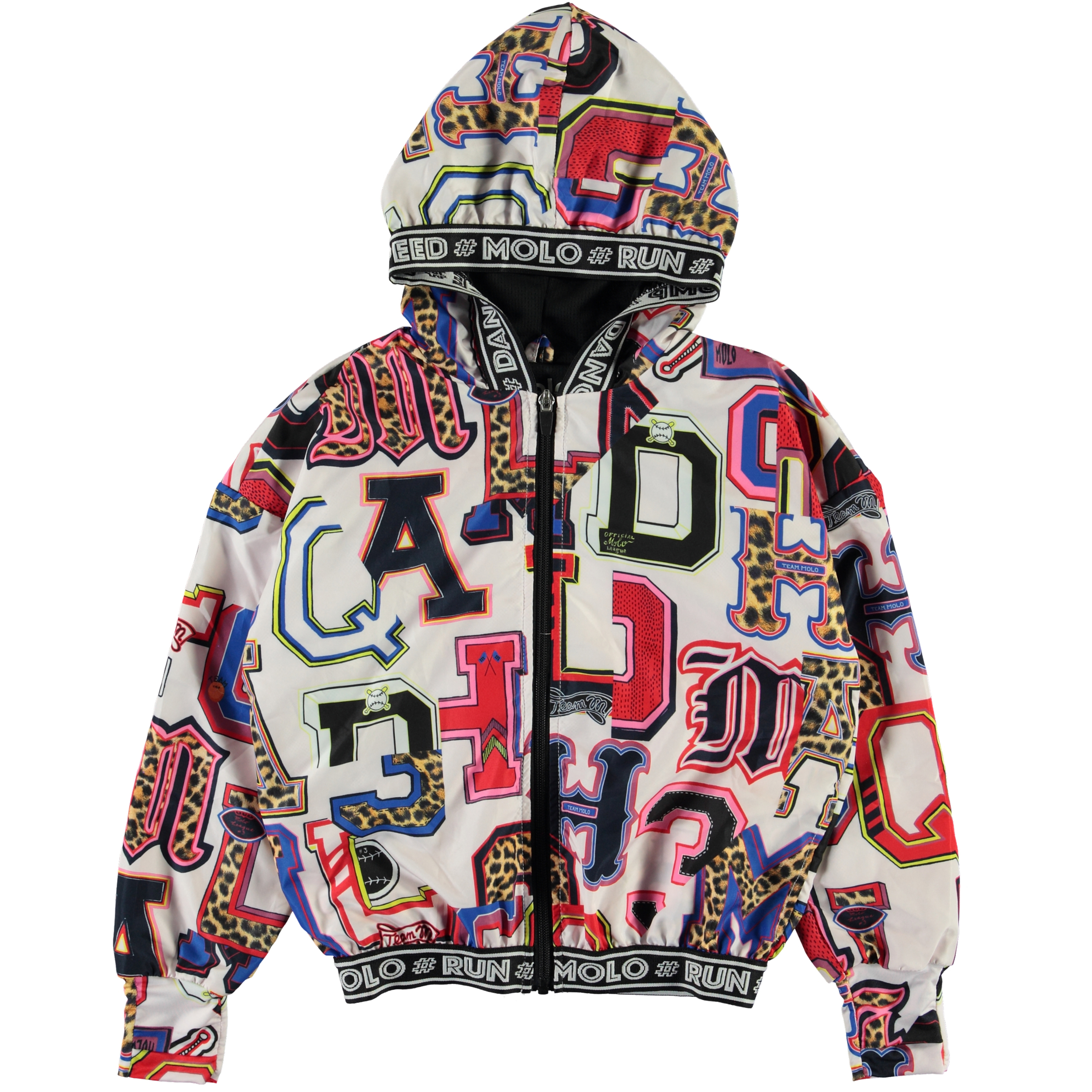 Ophelia is an airy sports jacket with a graphic letter print. The jacket has a zip closure and hood. It has an edge tape with text as well. The jacket is part of Molo's new sports collection, which helps integrate sports and fashion. Wear Ophelia with one of the matching styles from Molo's sports collection for a complete and cool look. Molo’s sports collection is created with a unique, high performance technology called HeiQ Smart Temp, which supports the body's own ability to cool down. The cool down function is activated when the body gets warm and sweaty, and then turns off when the body has cooled down. HeiQ Smart Temp ensures optimal comfort and performance. It has been independently tested to ensure that it is safe for the skin.