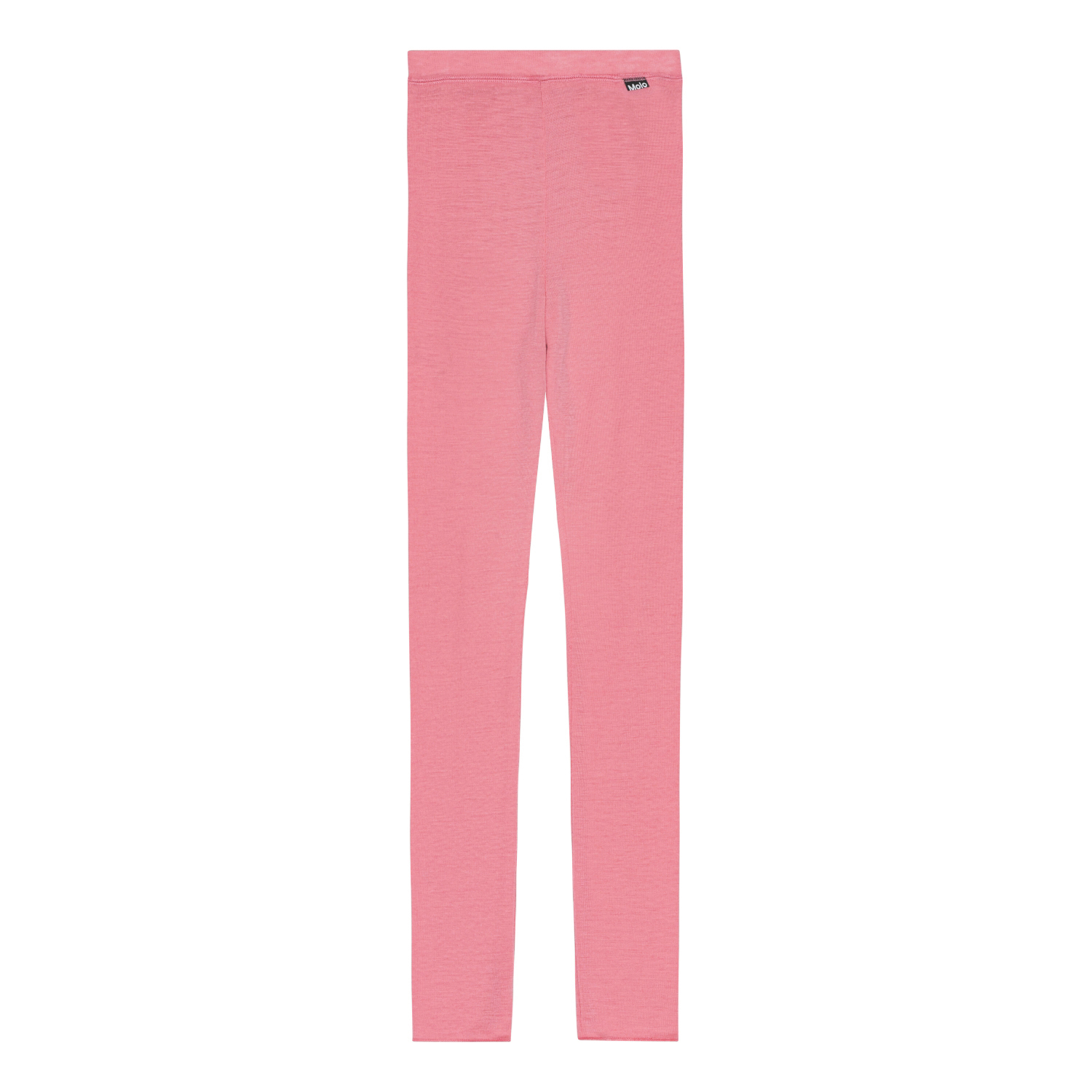 Pink leggings in merino wool with a snug fit and an elastic waistband for comfortable dressing. Made from soft, lightweight, and insulating merino wool with natural antibacterial properties that reduce odour. Fine fibres make the fabric comfortable against the skin. Ideal for layering in changing weather conditions and combining functionality with style. Pair with a blouse in the same colour for a complete set.