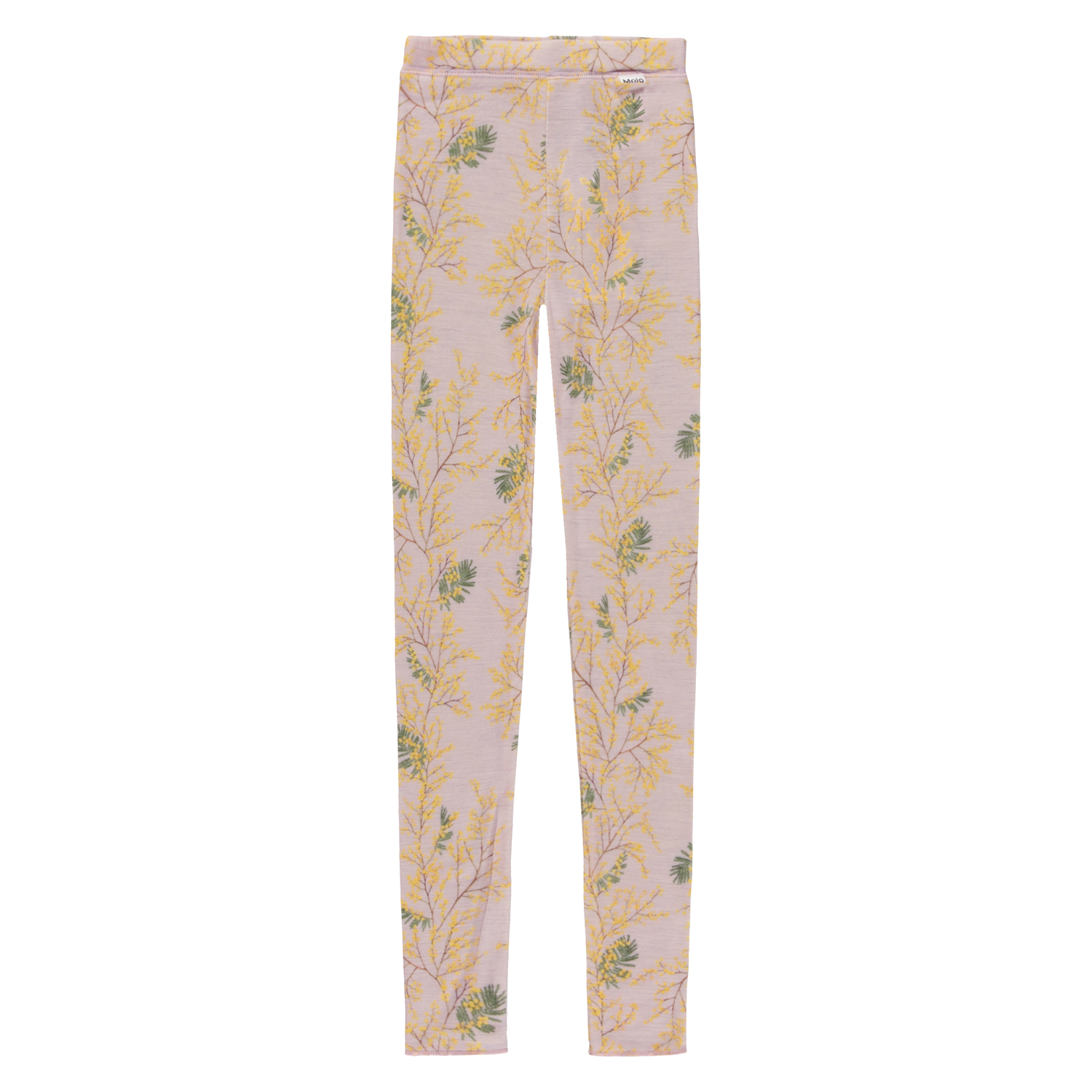 Light purple leggings in the softest wool quality and in an all over print. They are perfect for cold days. The print is of lovely branches of Mimosa flowers. These leggings are constructed in 100% Merino wool, have elastic at the waist and are in a slim fit. Wear these leggings with the Rihanna Wool jumper in the same print and material for the perfect set.