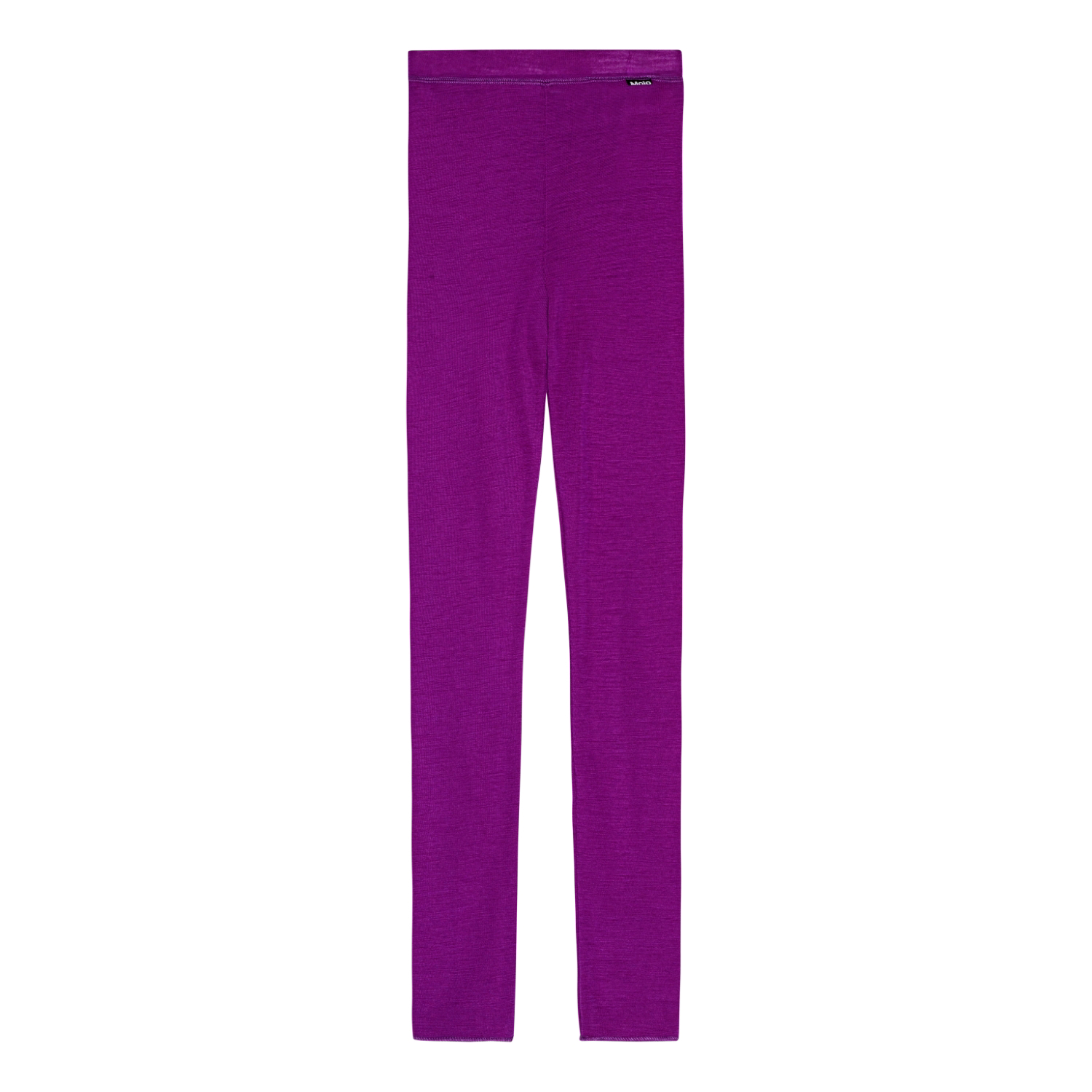 Purple leggings in merino wool with a snug fit and an elastic waistband for comfort and easy dressing. Pair them with a blouse in the same colour to create a complete set.