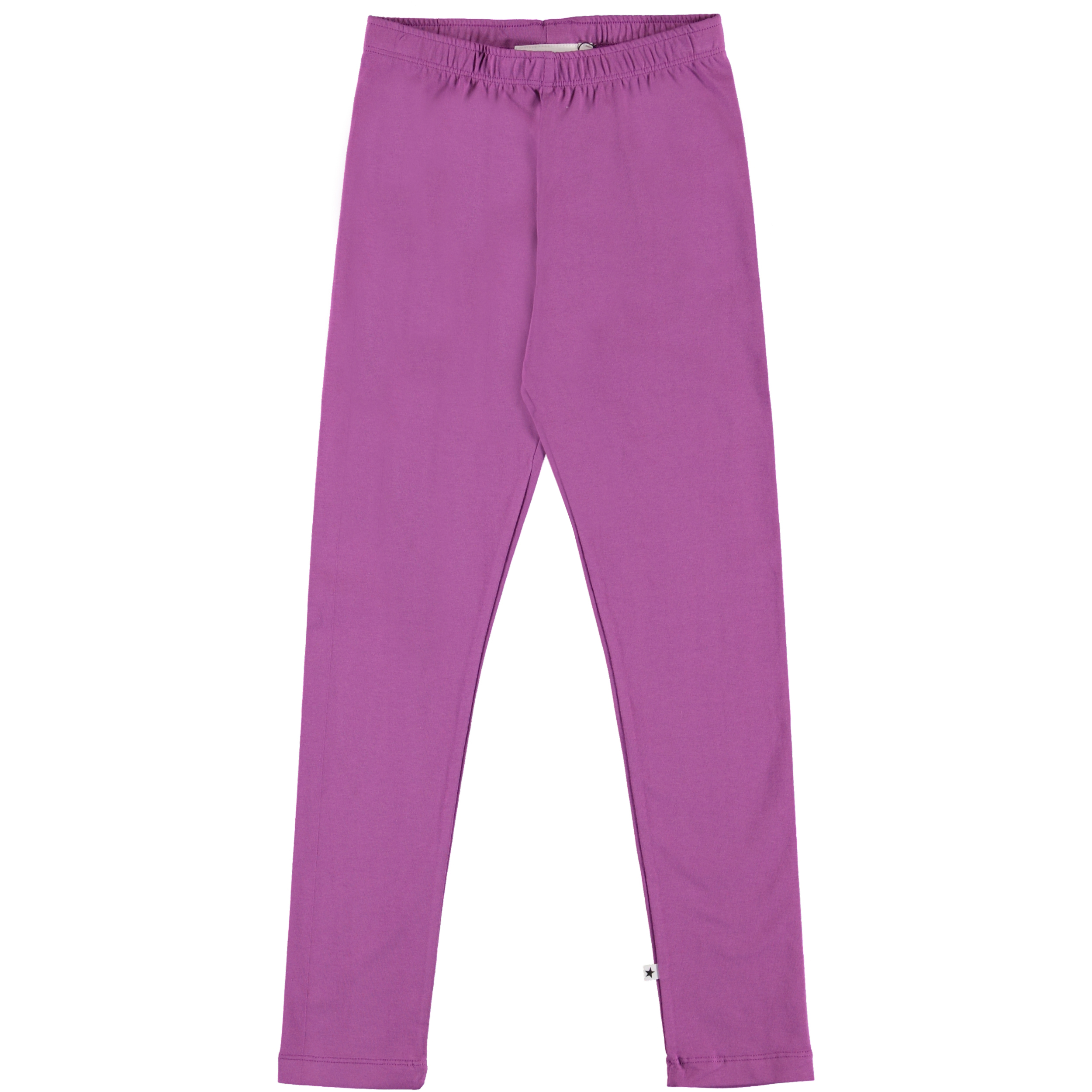 Molo's classic long leggings in purple. The leggings's stretchy, cotton blend fabric and elastic waist ensure a good fit.