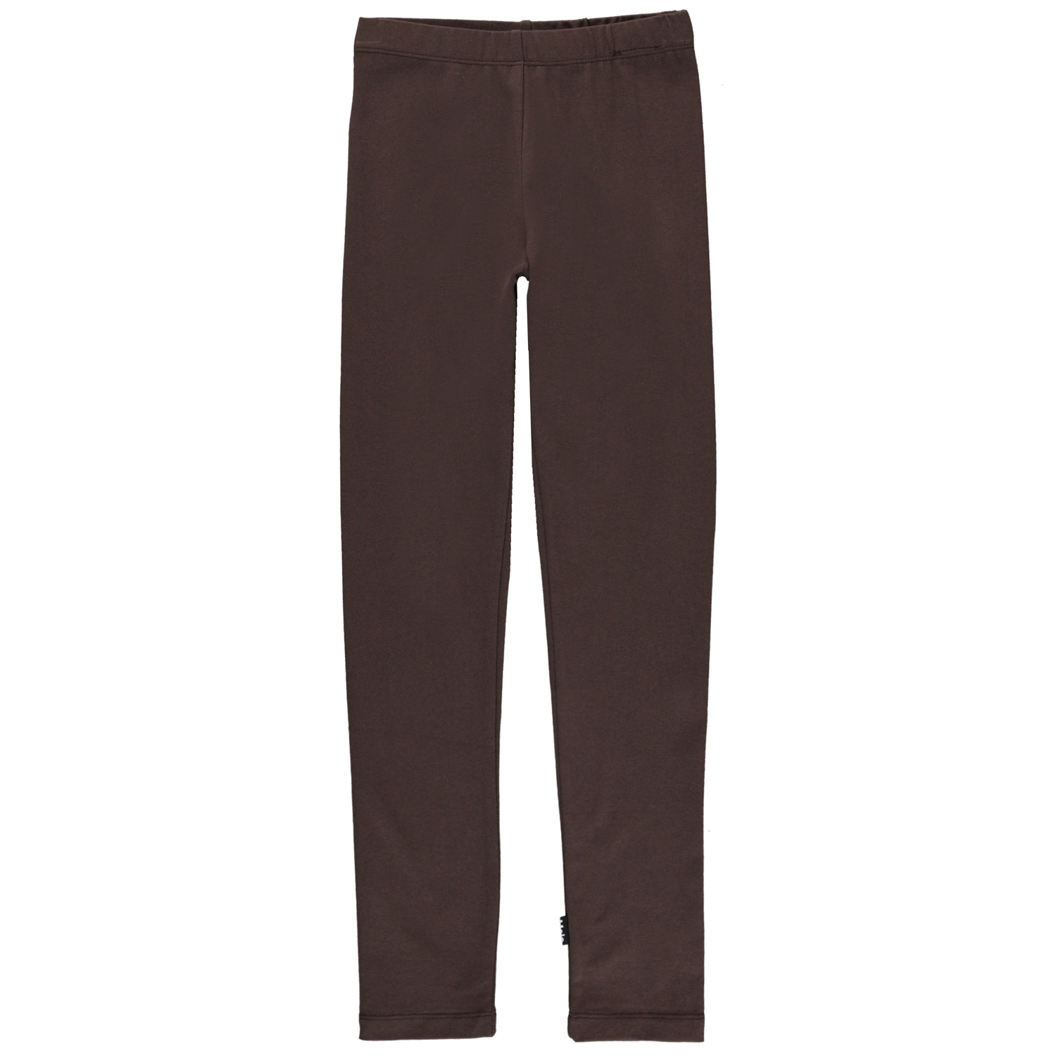 Molo's classic long leggings in brown. They are constructed in a stretchy cotton blend, and the elastic waist ensures a good fit.