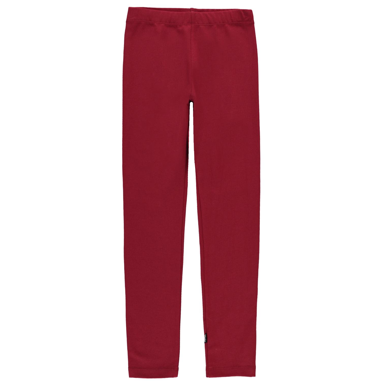 Molo's classic long leggings in dark red. They are constructed in a stretchy cotton blend, and the elastic waist ensures a good fit.