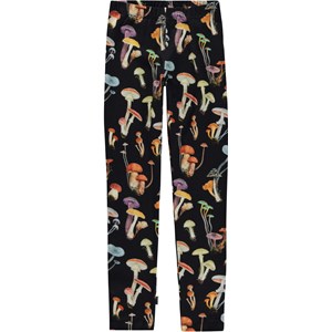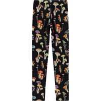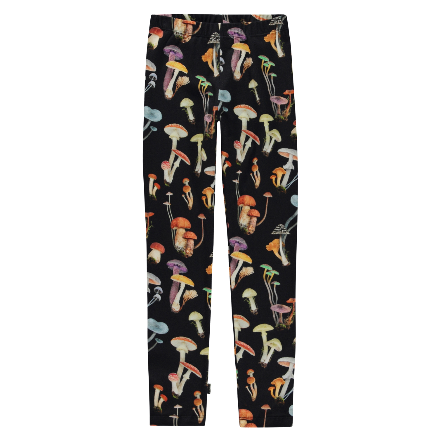 Black leggings in an all over mushroom print. The print is of a delicious array of mushrooms that could have been gathered during a lovely autumn walk through the forest. It's graphic, beautiful and simple. These leggings are in 100% cotton jersey, have elastic at the waist and are in a slim fit.