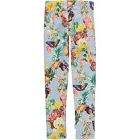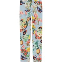 One of Molo's most popular styles! Niki is a pair of light blue leggings with elastic at the waist and made in organic cotton jersey. Niki is in the all over Tropical Fruits print with clusters of tropical fruits, tropical flowers and butterflies.