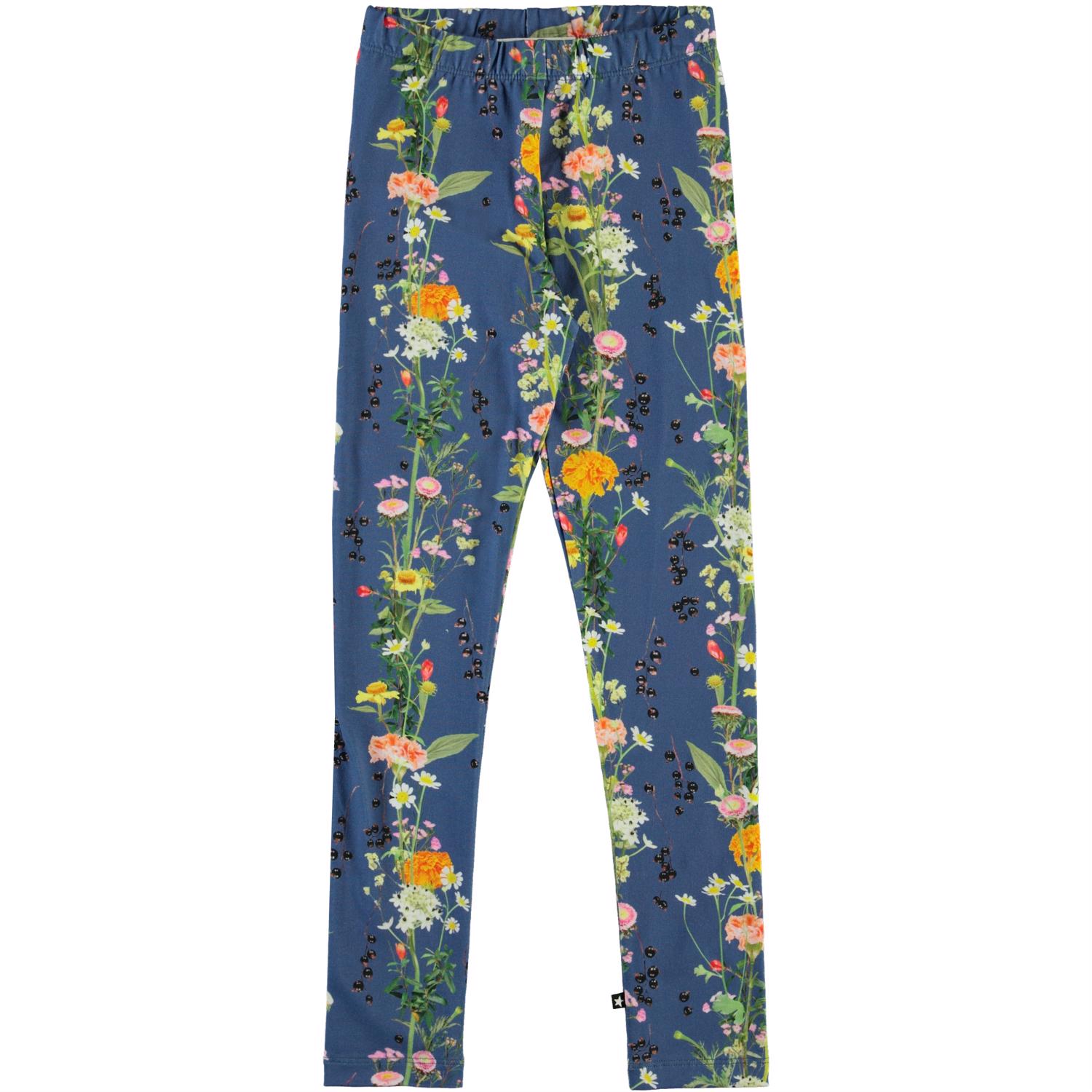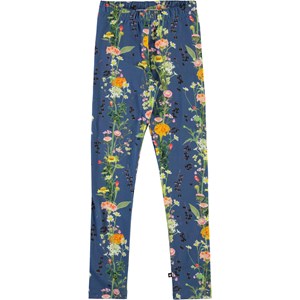 Molo's long, classic leggings in blue with a floral print. The stretchy cotton blend fabric and the elastic waist ensure a good, comfortable fit.