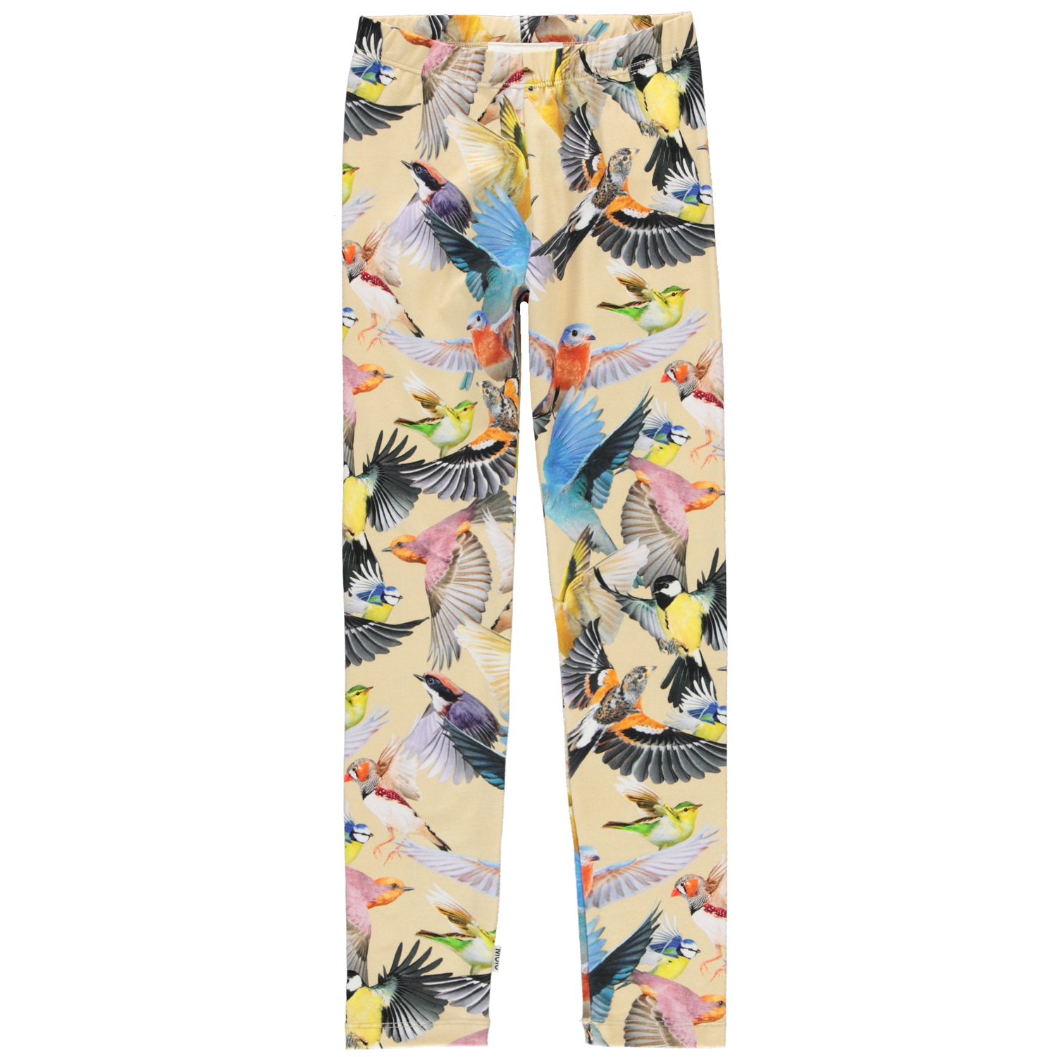 Molo's classic long leggings in light yellow with a bird print in stunning colours. They are constructed in a stretchy cotton blend, and the elastic waist ensures a good fit.
