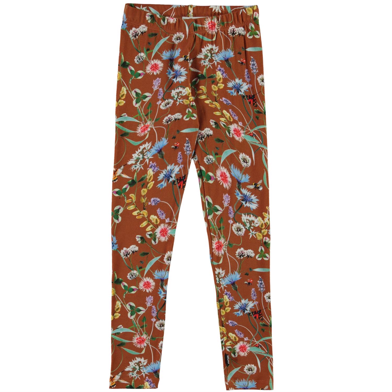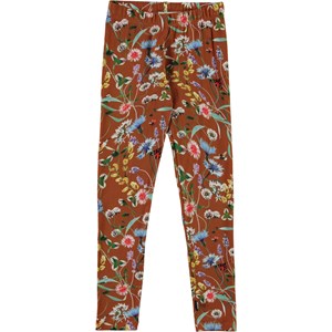 Molo's classic, long leggings in brown with a floral print. They are constructed in a stretchy, cotton blend fabric with an elastic waist for a good fit.