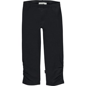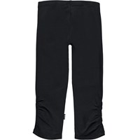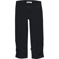 Nila is a pair of black trousers in organic jersey. The trousers have elastic at the waist and ruching at the side seams at the bottom of both legs.