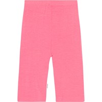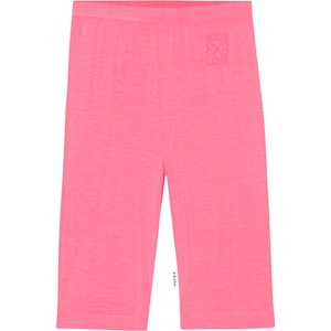 Pink bike shorts in soft, elastic viscose. The shorts are knee length and have an elastic waist and a small logo on the front with the text, 'More love'. They are snug fitting, comfortable and easy to pull on and off.