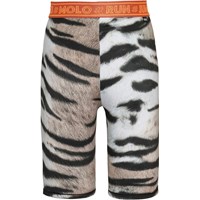Obelia is a pair of long sports shorts with a cool tiger print. They have an elastic orange waist with printed text. These sports shorts ensure perfect comfort and flexibility, while allowing for full, unrestricted movement. Obelia is a part of Molo's new sports collection, which seamlessly unites fashion and sports. Wear the the shorts with one of Molo's sports tops for a complete, sporty look. Molo’s sports collection is made with a unique, high-performance technology called HeiQ Smart Temp, which supports the body’s natural ability to cool itself down. The cooling function is activated when you are warm and sweating. The cooling function becomes deactivated when the body has cooled down. HeiQ Smart Temp ensures optimal performance and comfort. Independently tested for skin safety.