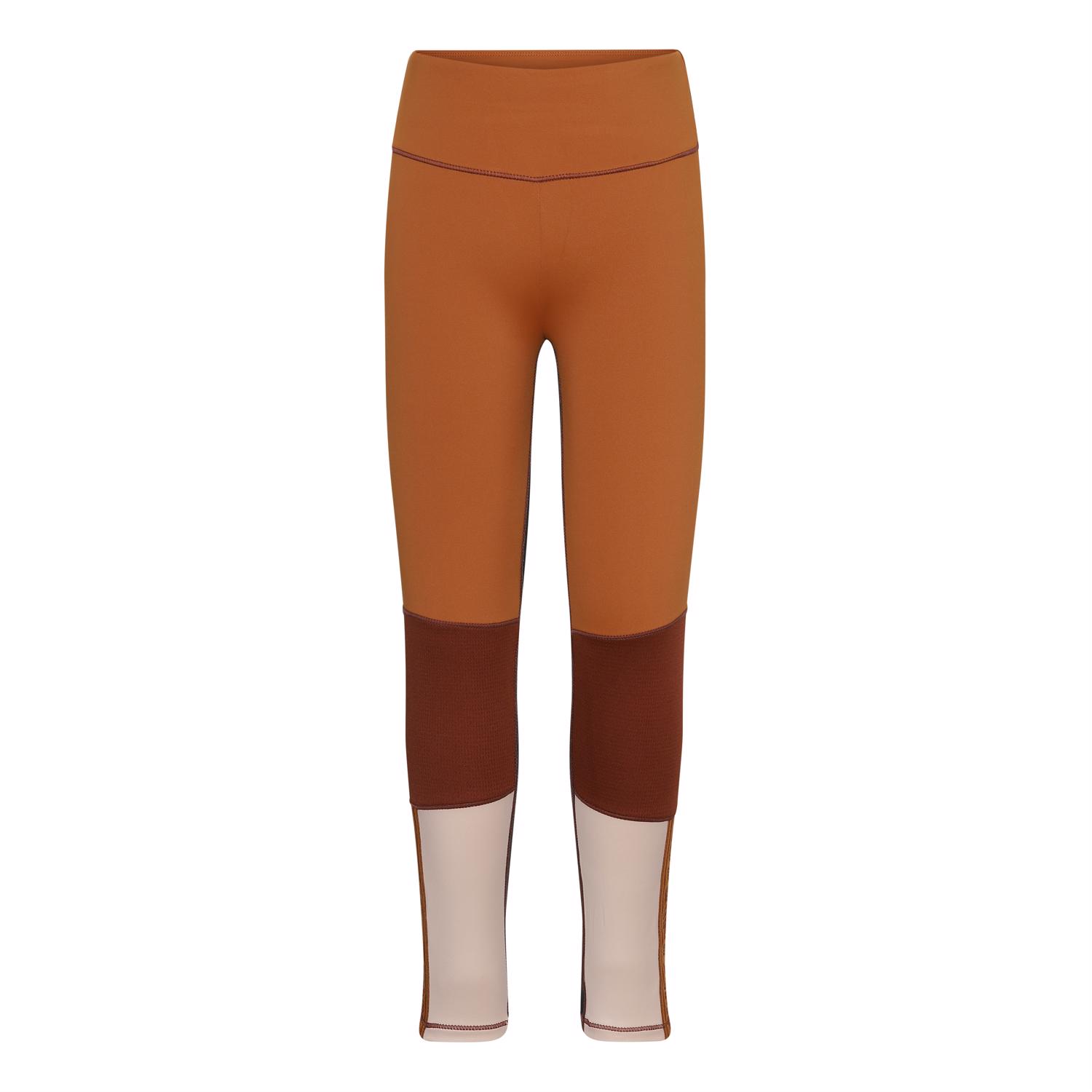 Olympia is a pair of leggings in two shades of brown and a pale rose bottom. They have a text tape on the outside of the lower legs. These sports leggings ensure perfect comfort and flexibility, while allowing for full, unrestricted movement. Olympia is a part of Molo's sports collection, which seamlessly unites fashion and sports. Wear the Olympia leggings with one of Molo's sports tops for a complete, sporty look. Molo’s sports collection is made with a unique, high-performance technology called HeiQ Smart Temp, which supports the body’s natural ability to cool itself down. The cooling function is activated when you are warm and sweating. The cooling function becomes deactivated when the body has cooled down. HeiQ Smart Temp ensures optimal performance and comfort. Independently tested for skin safety.