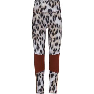 Olympia is a pair of leggings with a snow leopard print and brown details at the knees as well as a brown text tape on the lower part of the legs. These sports leggings ensure perfect comfort and flexibility, while allowing for full, unrestricted movement. Olympia is a part of Molo's sports collection, which seamlessly unites fashion and sports. Wear the Olympia leggings with one of Molo's sports tops for a complete, sporty look. Molo’s sports collection is made with a unique, high-performance technology called HeiQ Smart Temp, which supports the body’s natural ability to cool itself down. The cooling function is activated when you are warm and sweating. The cooling function becomes deactivated when the body has cooled down. HeiQ Smart Temp ensures optimal performance and comfort. Independently tested for skin safety.