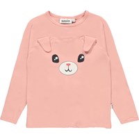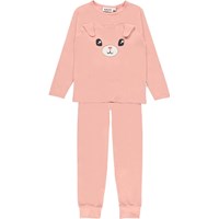 Linni is a pink nightwear set in a soft cotton jersey. There is a teddy bear face on the stomach that has sweet ears that are sticking out.
