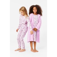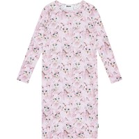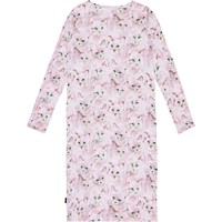 Pink organic cotton nightie. It is loose with long sleeves and a round neckline. The soft cotton is comfortable against the skin and provides plenty of room for movement. The nightie features a print of cute watercolour-painted cats in shades of pink and rose.