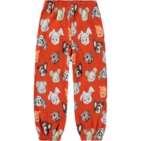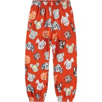 Orange sweatpants made of organic cotton with an elastic waist, inner drawstring, elastic around the ankles and side pockets. The sweatpants have a regular fit and a lovely all-over print of cute drawn animals.
