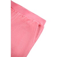 Pinkvelour pants made of a soft cotton blend in a trumpet shape. The pants have a wide elastic waistband with an internal drawstring that makes them easy to put on and comfortable to wear. Combine the pants with the matching cardigan for a soft and sporty set.