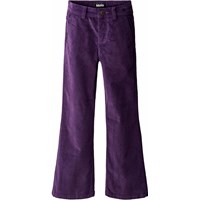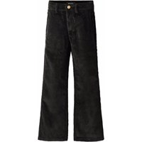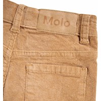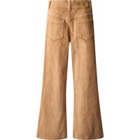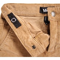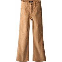 Light brown pants made of soft cotton velvet in a trumpet-shaped silhouette. The pants have front and back pockets. The waist has a button and zip closure as well as an internal adjustable elastic for a good fit.