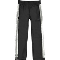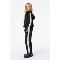 Aimee is a pair of black track pants with gorgeous sequin stripes on the sides of the legs. Brush the sequins up or down to create either a dark colour or a silver colour.