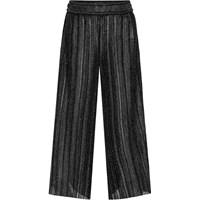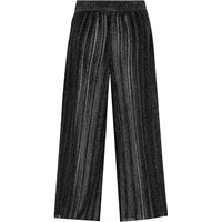 Black pleated trousers with an elastic waistband and a loose fit, featuring a sparkling effect and a comfortable fit.