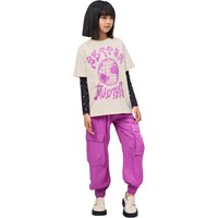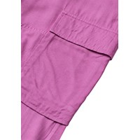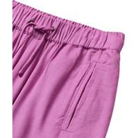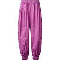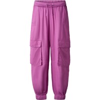 Purple cargo trousers made of soft viscose in a loose fit. The trousers have an elastic waist with drawstring, side pockets, cargo pockets on the thighs, and elastic at the ankles for a sporty finish.