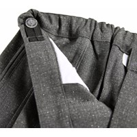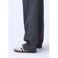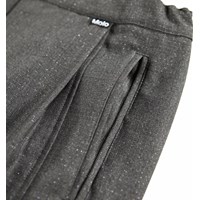 Grey flannel pants with silver thread in a loose fit. The pants are slightly high-waisted with wide legs and pleats at the front that creats a nice silhouette. They have two side pockets and a nice seam running down the legs at the front and back. The waist has a button and zip closure and an adjustable internal elastic for a good fit. Combine it with the matching waistcoat for a stylish look.