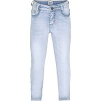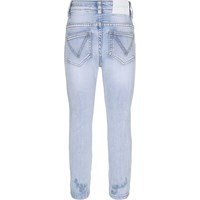 Cool blue denim jeans in a washed look in a regular fit. The jeans have an adjustable waist with belt loops, a button, a leather patch, front and back pockets and lovely embroidery around the edge of the front pockets and at the leg. Note that sizes up to and including 128 have a snap, and size 134 and higher have a jeans button.